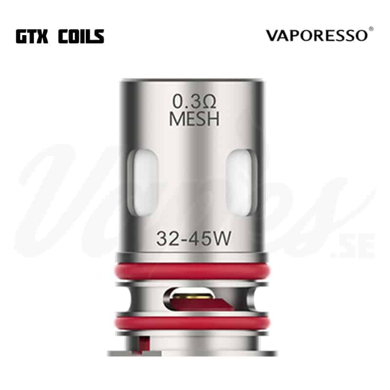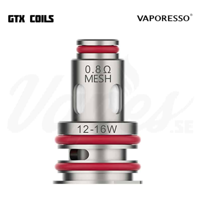 | Vaporesso GTX One Kit | 0.6 / 0.8 / 1.2 ohm (Mesh & Regular, även TS) | 0.6–1.2 ohm |