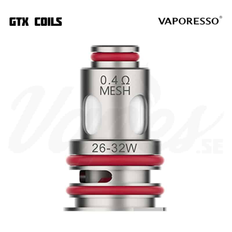 - Vaporesso GTX GO 40: 0,3 ohm (TS) / 0,4 ohm (TS) / 0,6 ohm (TS) / 0,8 ohm (TS) / 1,2 ohm Regular (TS) / 1,2 ohm Mesh (TS) / RBA (TS)