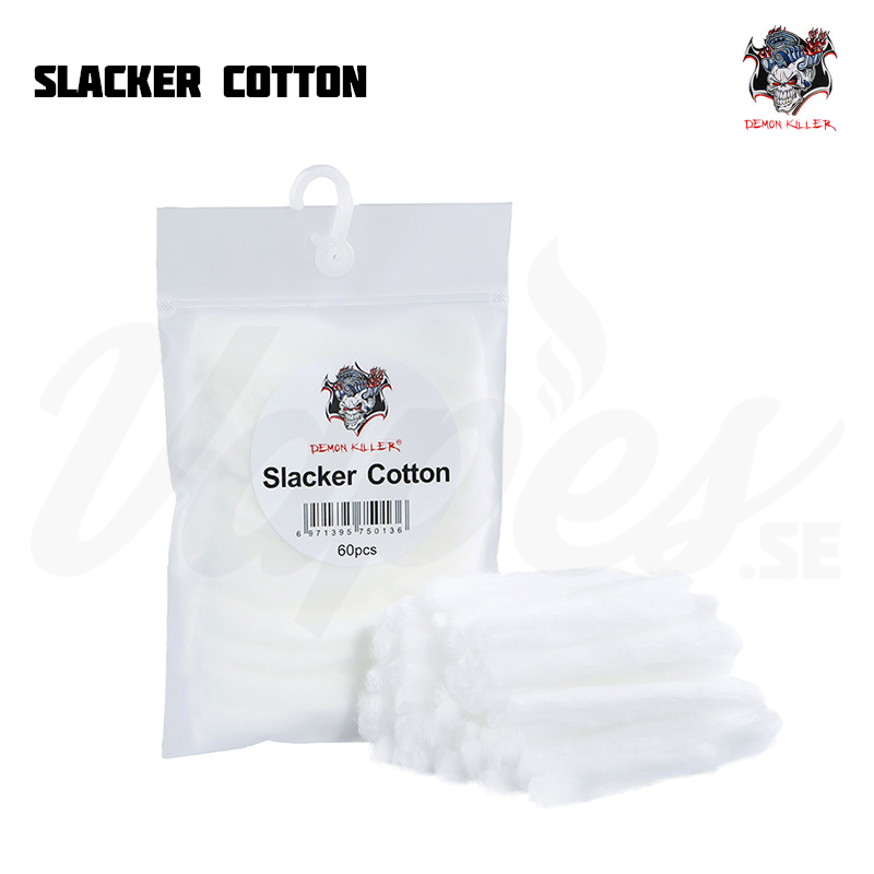 När det är dags att wicka om din RDA/RTA/RDTA så behöver du bra bomull. Demon Killer Slacker Cotton innehåller 60 st bomullsremsor. Högabsorberande och värmeresistent prisvärd bomull.