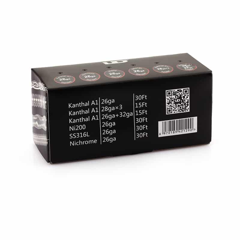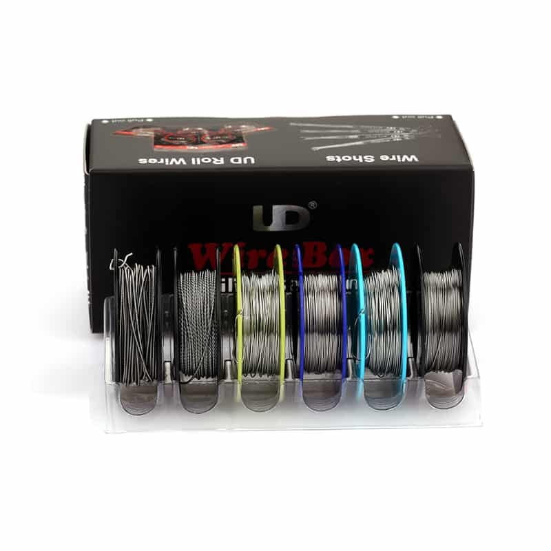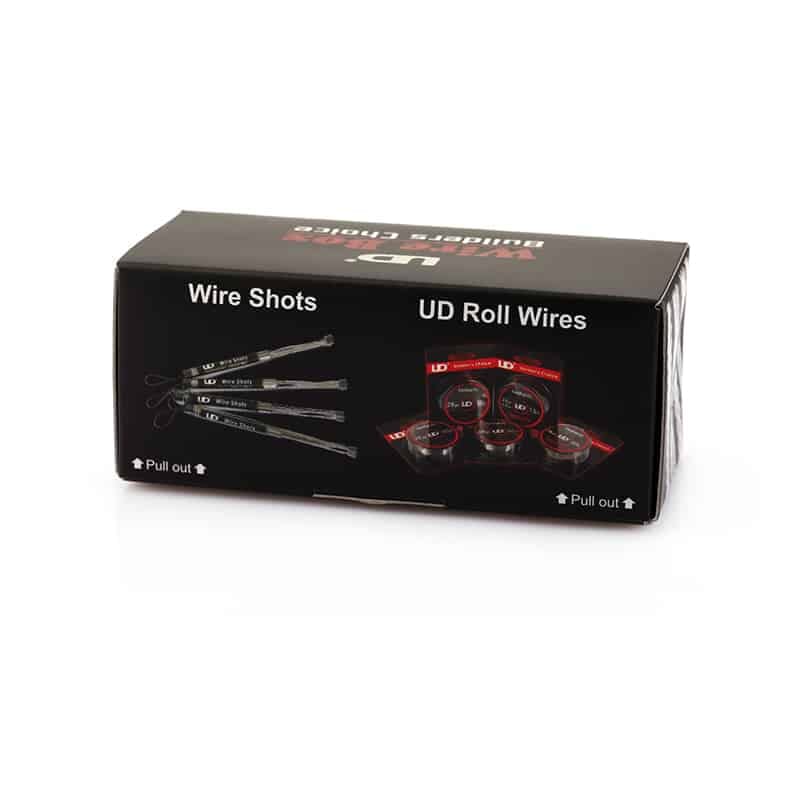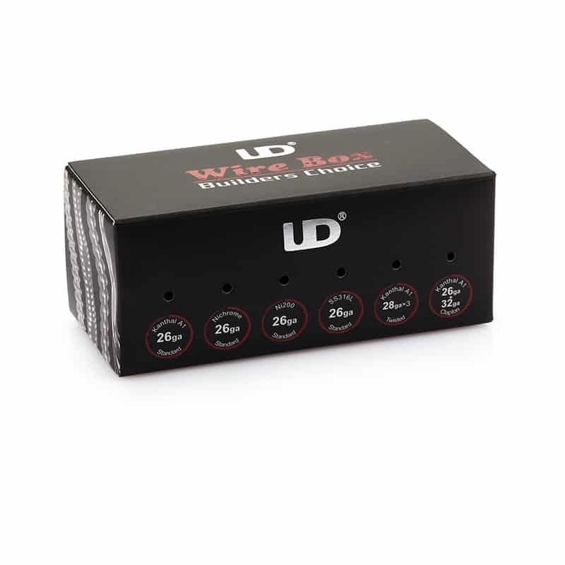 Youde/UD Wire Box är en smidig låda med monterade trådspolar för ett smidigt bygge av egna coils/förbrännare till RBA/RDA/RTA. Det ingår 6 stycken spolar med olika egenskaper på trådarna (listade nedanför), paketerat i en snygg UD låda.