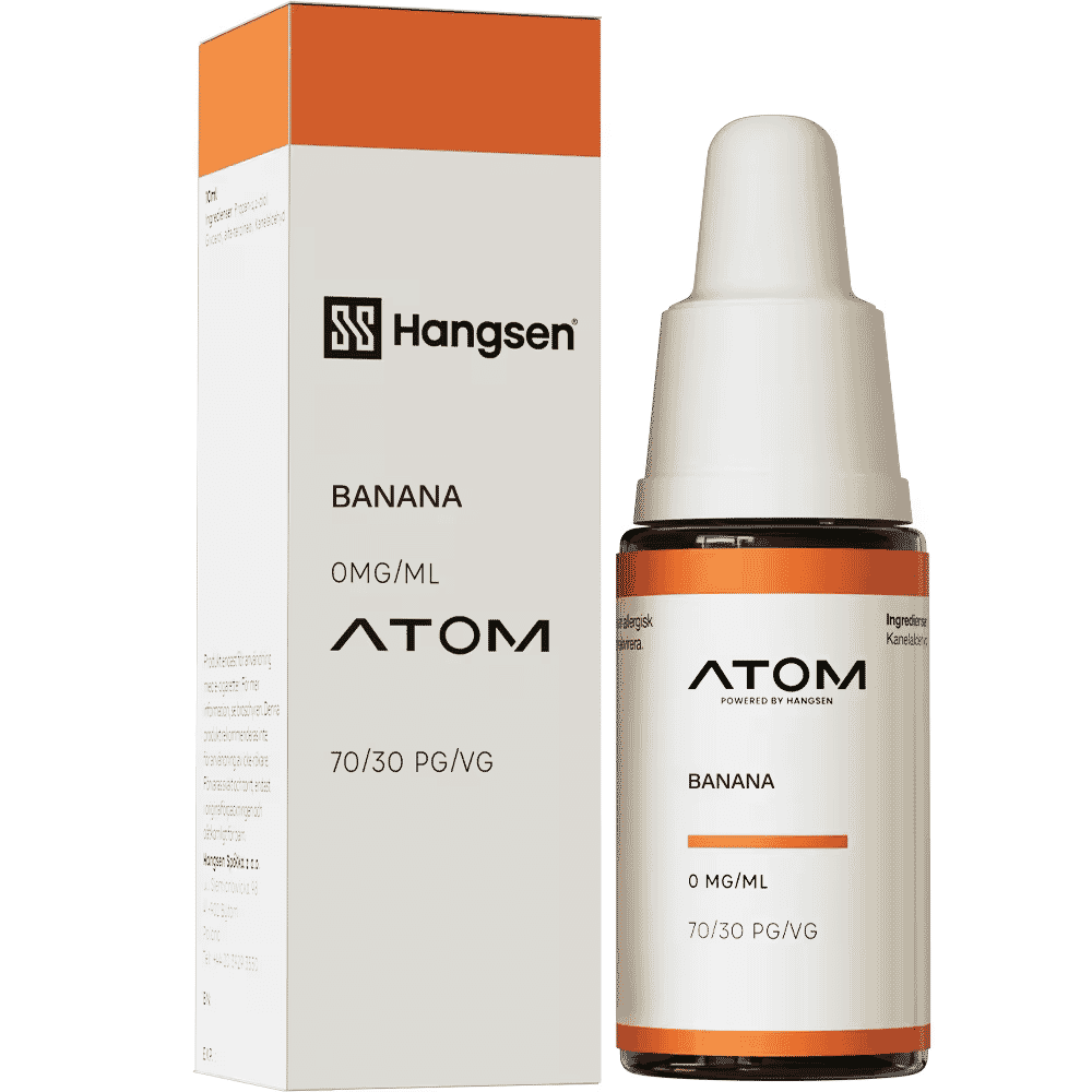 Hangsen Atom Banana är e-juice till e-cigaretter med smak av banan. Färdigblandad och lämplig för MTL (coils över 0,8 ohm).
