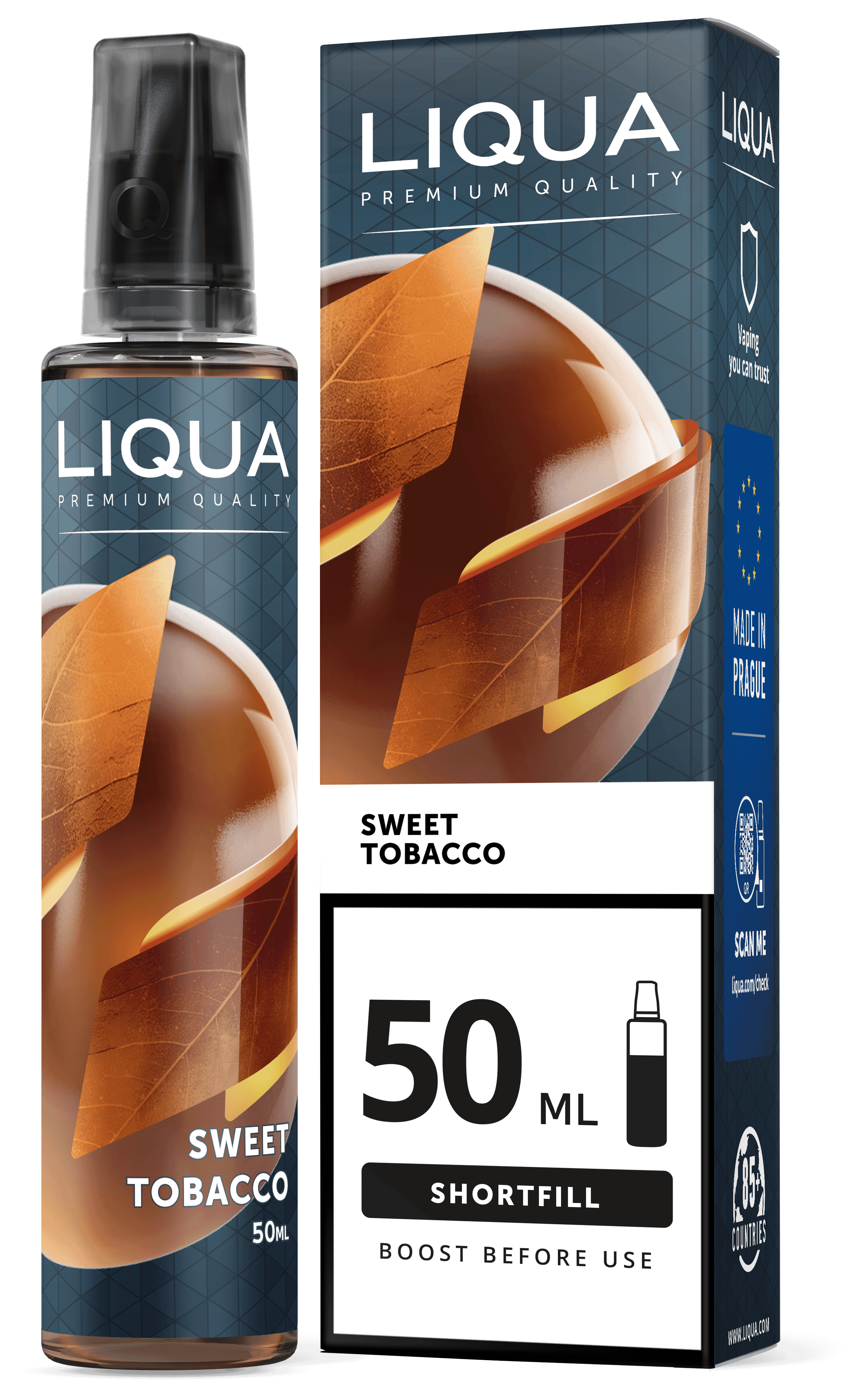 Sweet Tobacco är en 50 ml Shortfill från Liqua med en smak utav söt tobak tillsammans med karamell och vanilj. Denna Shortfill är utformad med 20 ml utrymme för att kunna tillsätta med 2st nikotinshots eller basvätska. Shortfills ifrån Liqua har en blandning utav 75% innan utspädning.