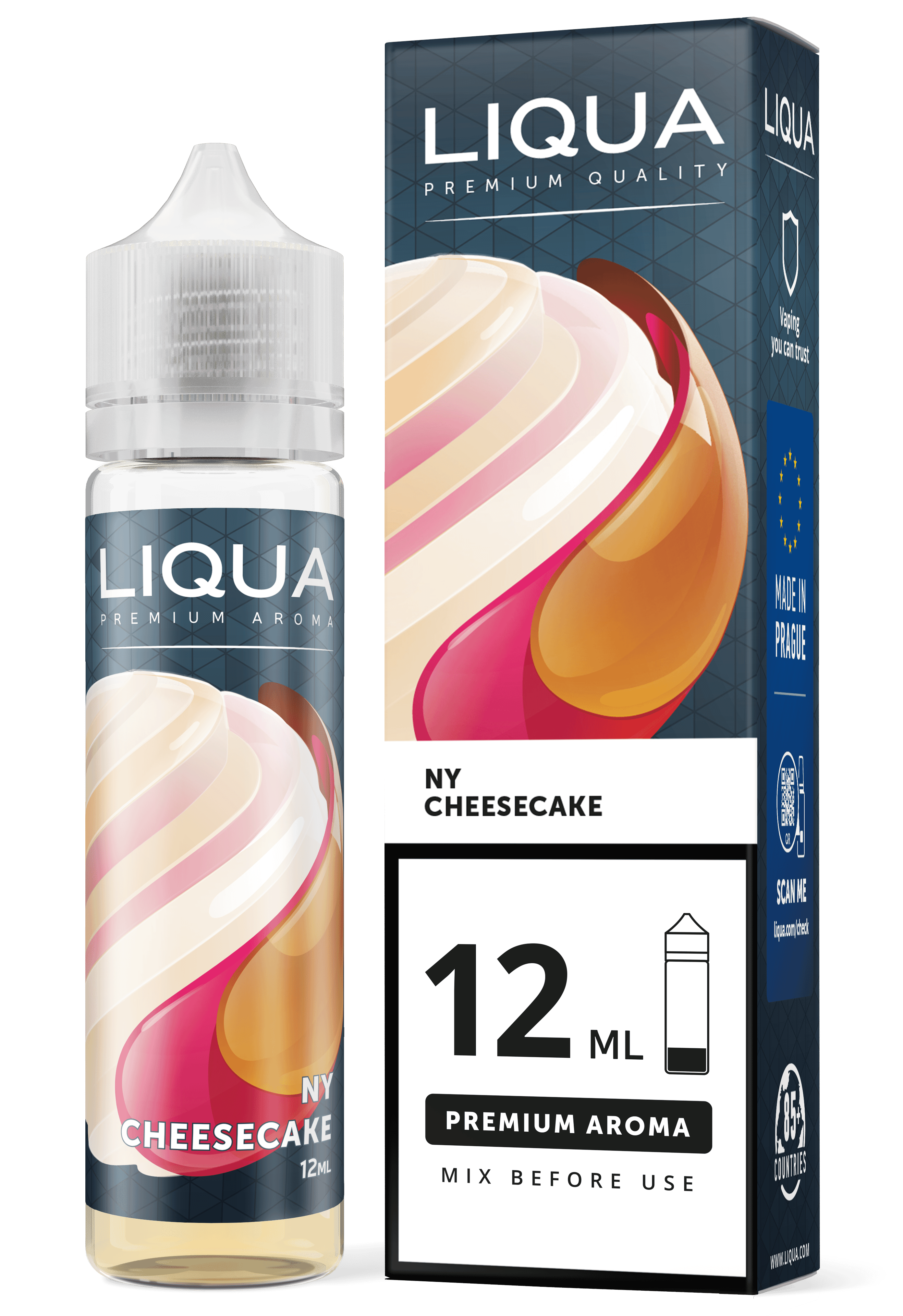 NY Cheesecake är en 12 ml Longfill från Liqua med en smak utav New York-cheesecake med toner utav kiwi och blåbär. Denna Longfill är utformad med 58 ml utrymme för att kunna tillsätta upp till 5,8 st (totalt 58 ml) nikotinshots eller basvätska. Dessa Longfills ifrån Liqua har en blandning utav 100% PG innan utspädning.