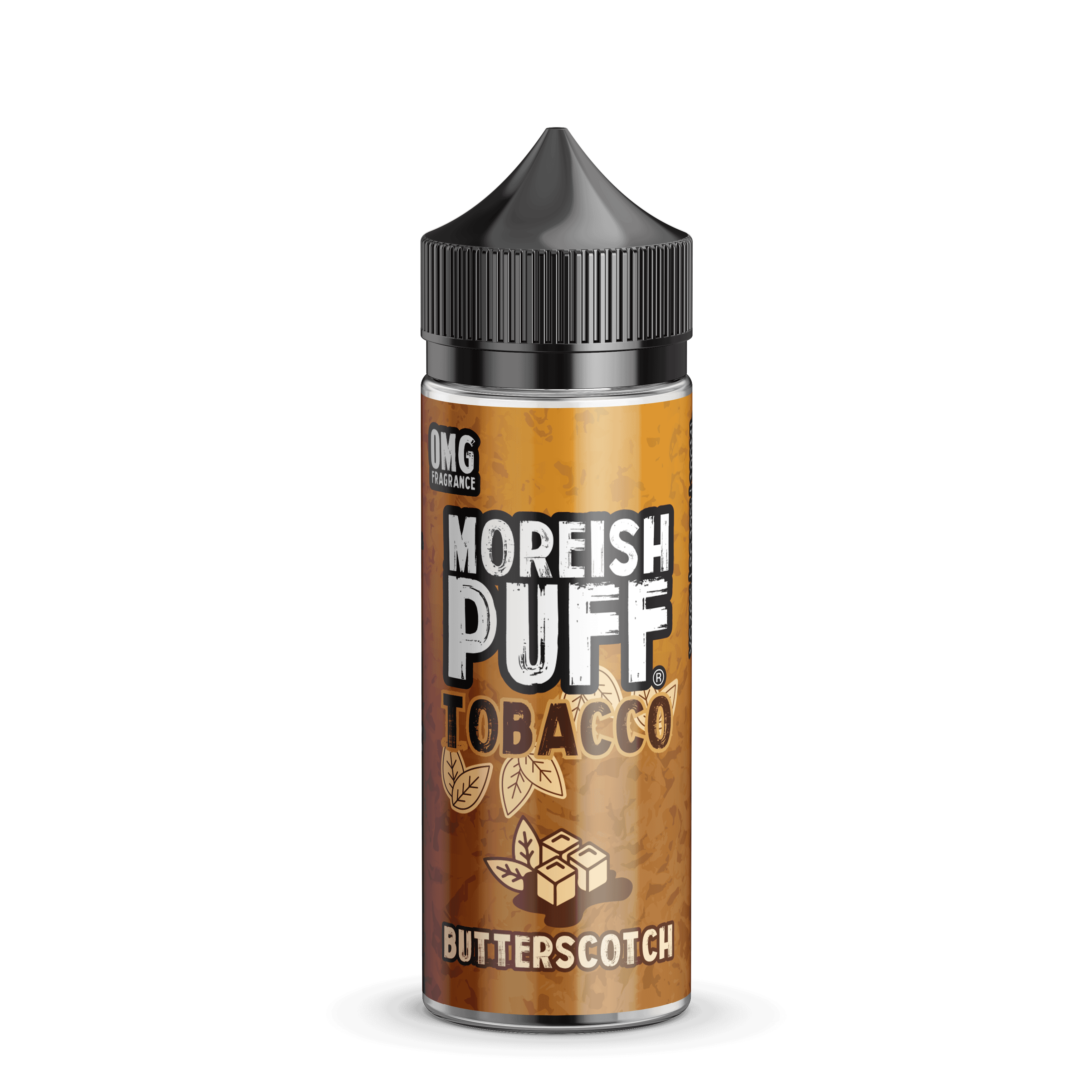 Moreish Puff Tobacco Butterscotch med en len smak av mild tobak och smörkola.