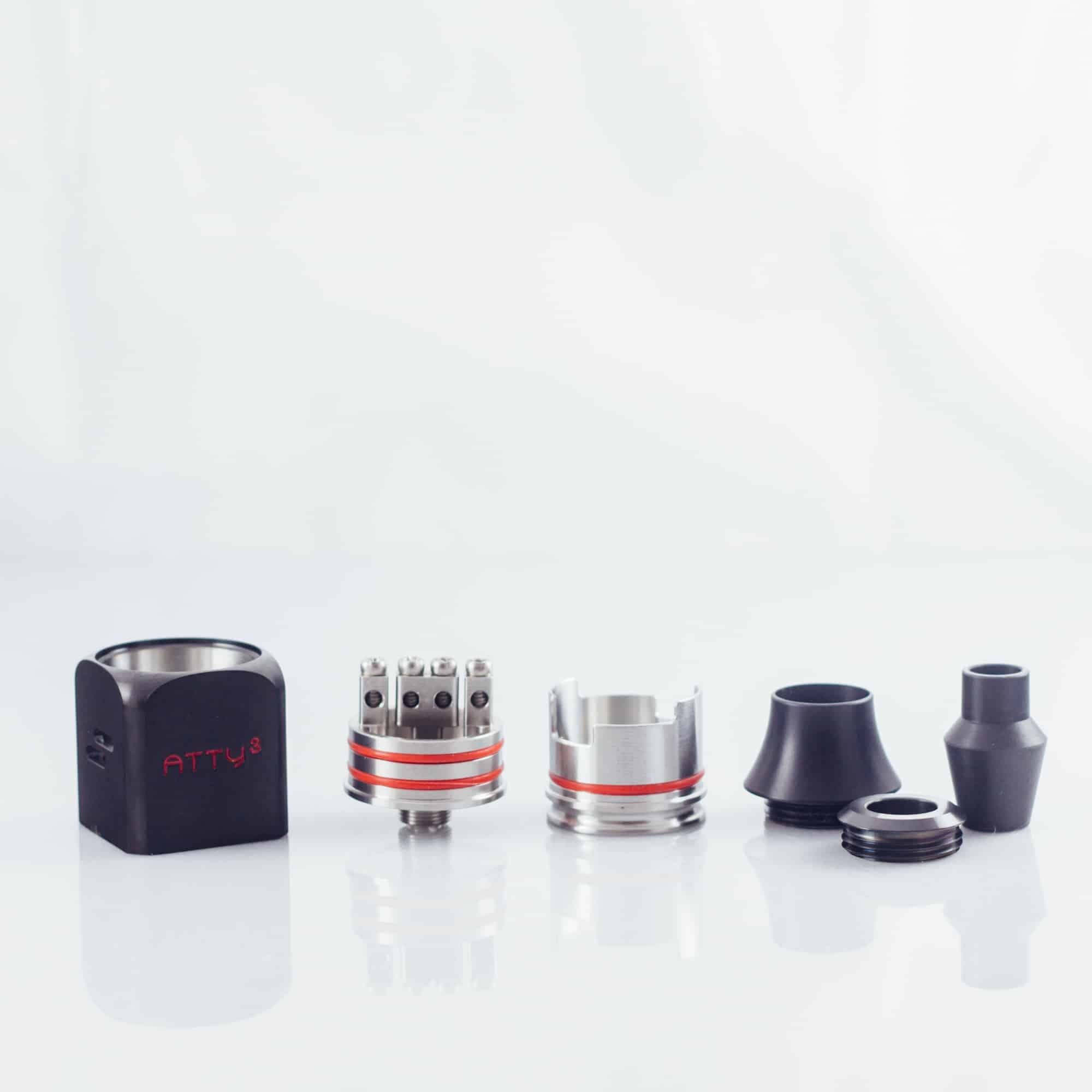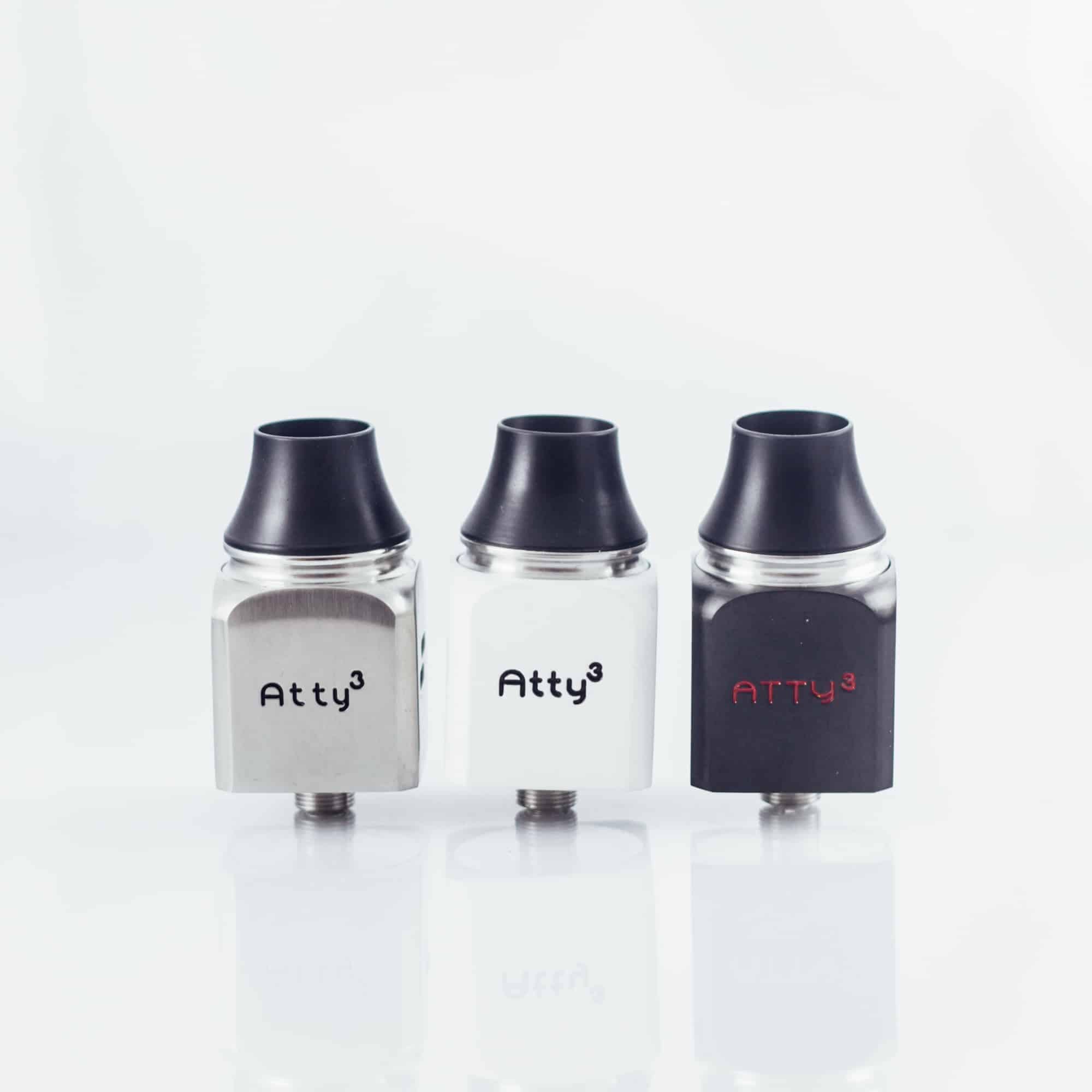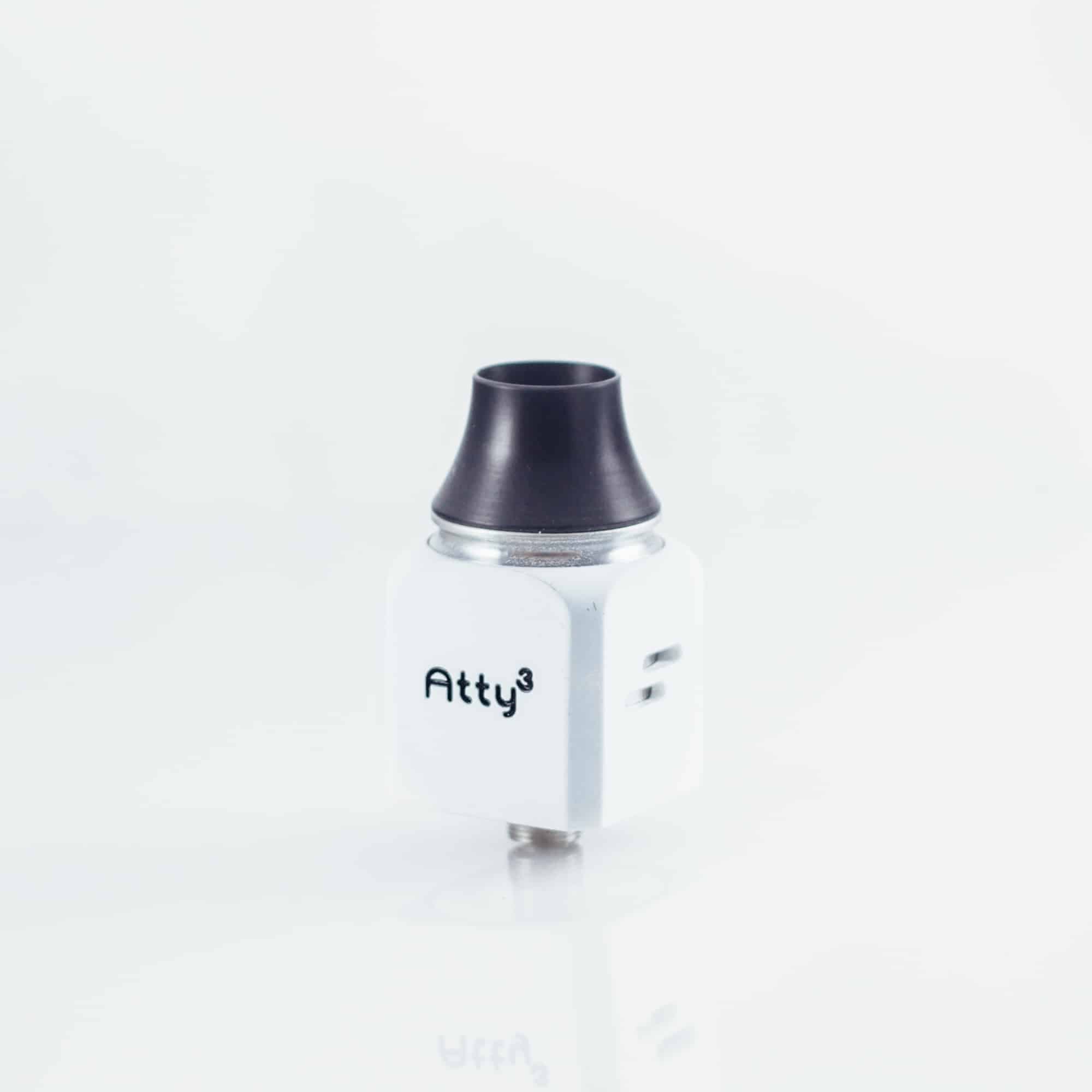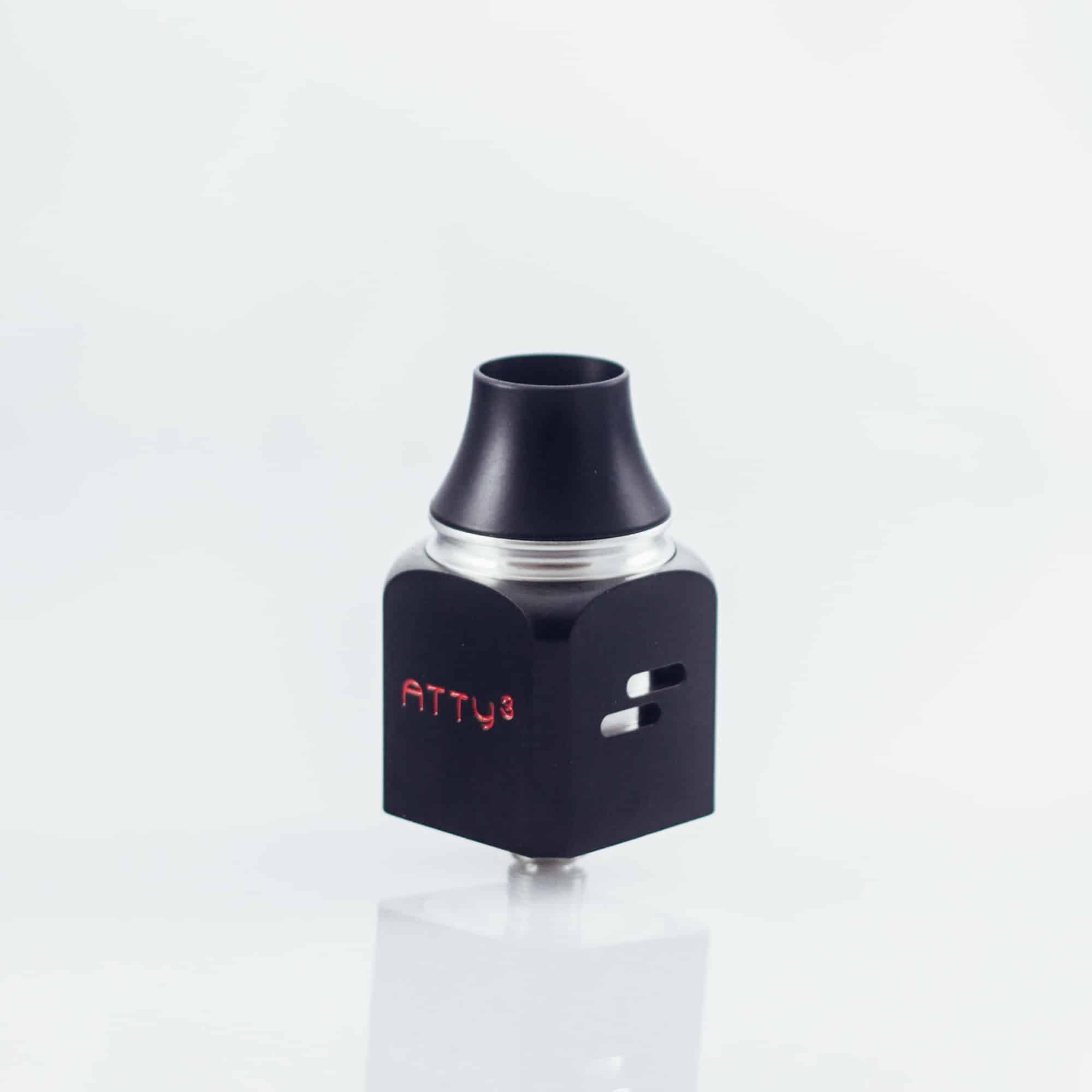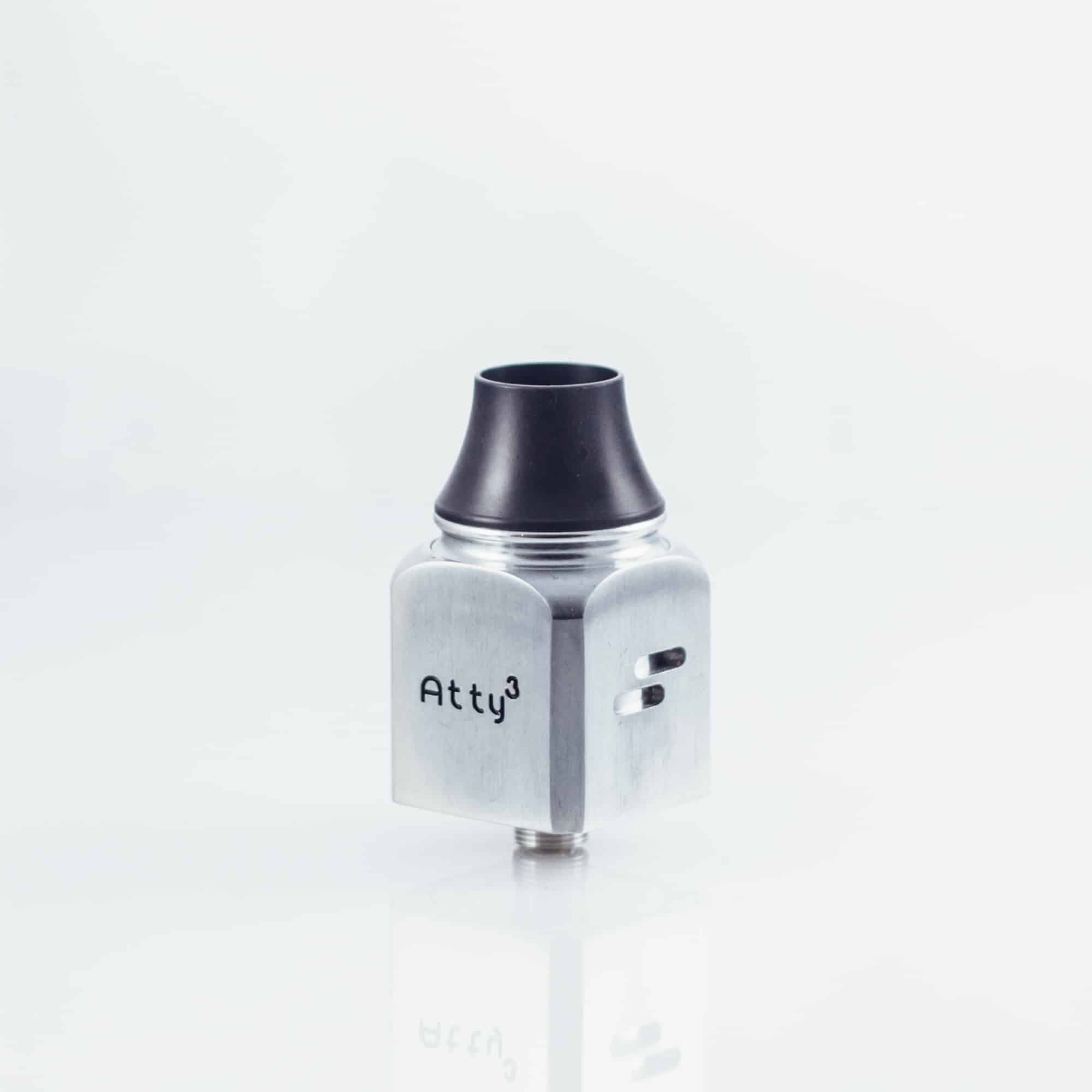 Wotofo Atty 3 är en kubformad RDA (Rebuildable dripper atomizer) som ser riktigt läcker ut på en boxmod. Den har 2 positiva och 2 negativa poster i rostfritt stål som är enkla att bygga i. Munstycket är av sorten chuff cap, en större drip tip som låter mer ånga och därmed mer smak flöda. En 510-drip tip adapter medföljer. Stora justerbara luftflödeshål!