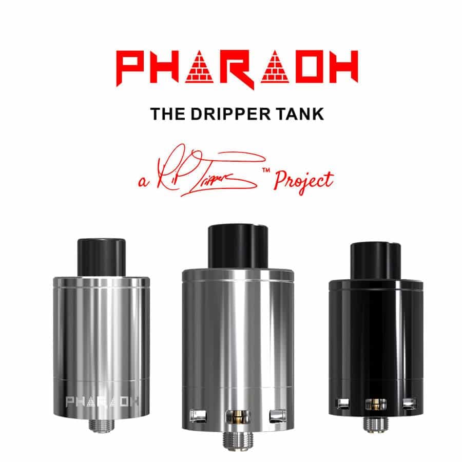 Digiflavor Pharaoh är resultatet av ett samarbete mellan youtubestjärnan RiP Trippers och Digiflavor. Det är en ombyggbar dripper tank (RDTA) med praktiska egenskaper så som fjädrade klämmor (spring loaded clamps) som tillåter vilka trådar som helst, justerbara lutfthål längst ner som går direkt till coilen. Med sina 25 mm diameter, kan du montera större och speciella byggen. Pharaoh 25 kan med stor chans bli din nya favorit-RDTA.
