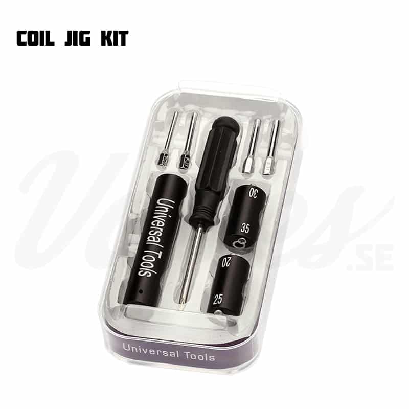 Ett 4-i-1 coil jig kit för RBA/RDA/RDTA/RTA! Detta verktyg gör det enkelt att snurra tighta och perfekta coils på några sekunder. Med 4 olika storlekar har du många möjligheter i dina byggen. Verktyget fungerar på så sätt att du fäster din tråd på jiggen och vrider på det, så får du snygga coils. Kallas ofta för Kuro Coiler.