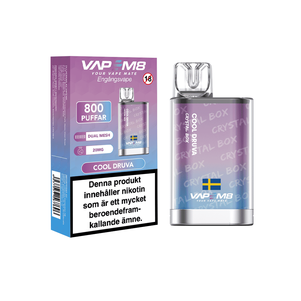 VapeM8 Crystal Box – Cool Druva är en engångsvape med smak kylande Vindruvor.