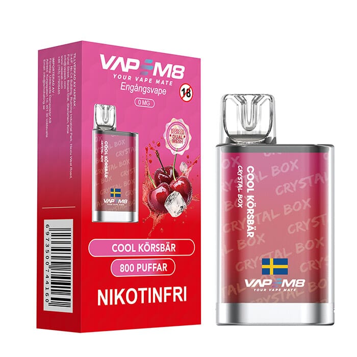 VapeM8 Crystal Box – Cool Körsbär är en nikotinfri engångsvape med smak utav kyliga körsbär.