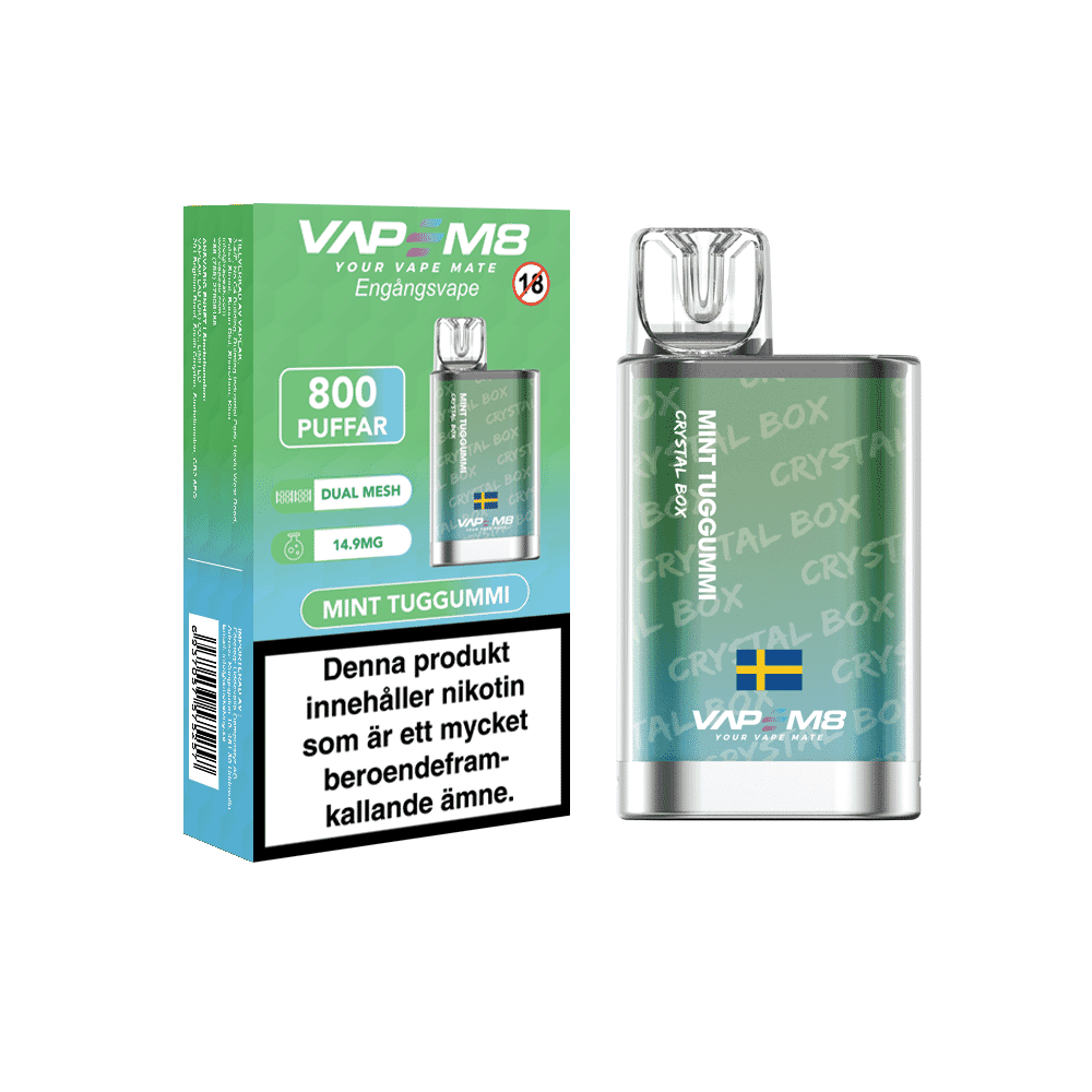 VapeM8 Crystal Box – Mint Tuggummi är en engångsvape med smak av söt mint och bubbelgum samt kyla.