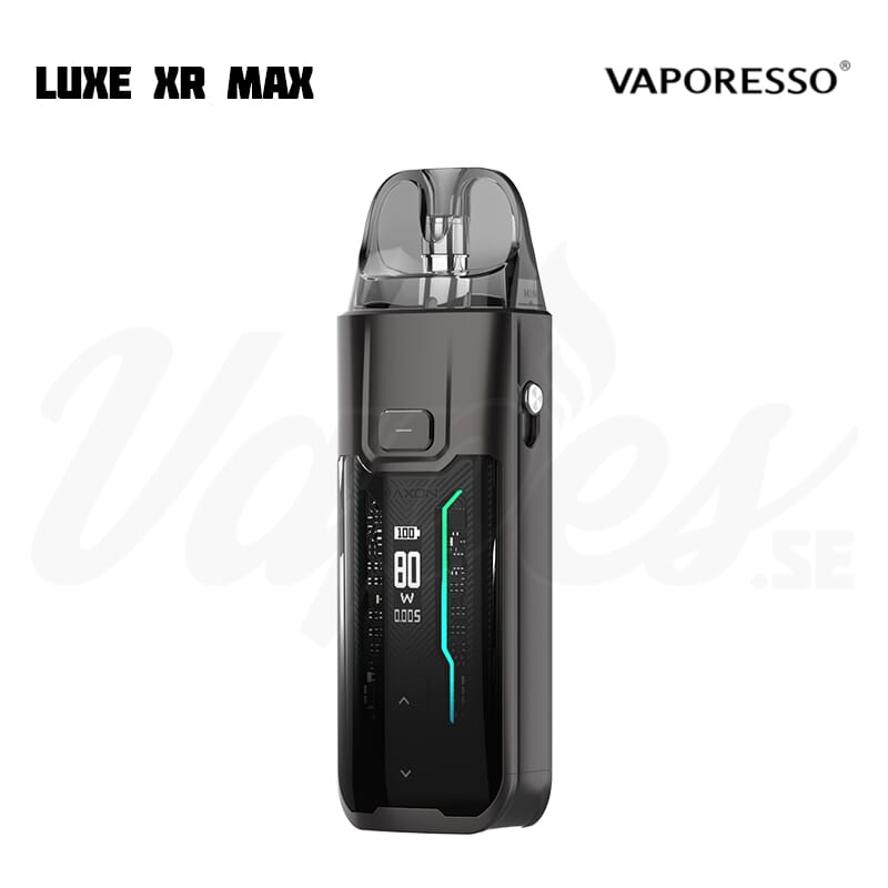 Vaporesso LUXE XR MAX är ett nytt podsystem från Vaporessos populära LUXE-serie. Enheten har ett kraftigt inbyggt batteri på 2800 mAh och klarar en effekt på upp till 80 watt. Du laddar batteriet enkelt med medföljande USB-C-sladd.