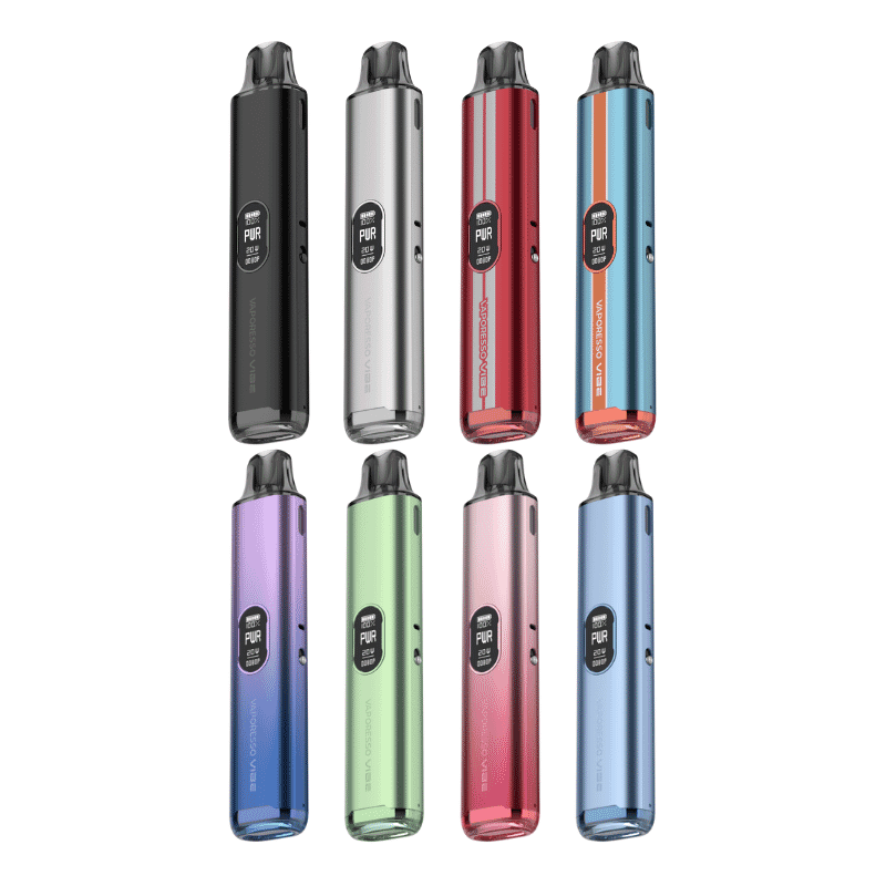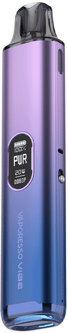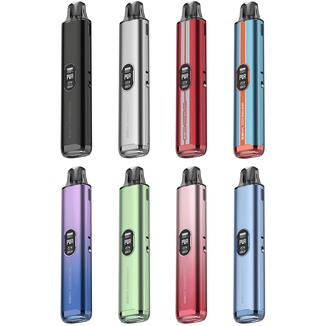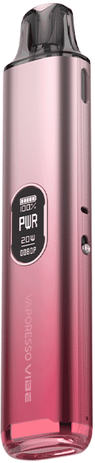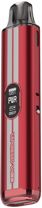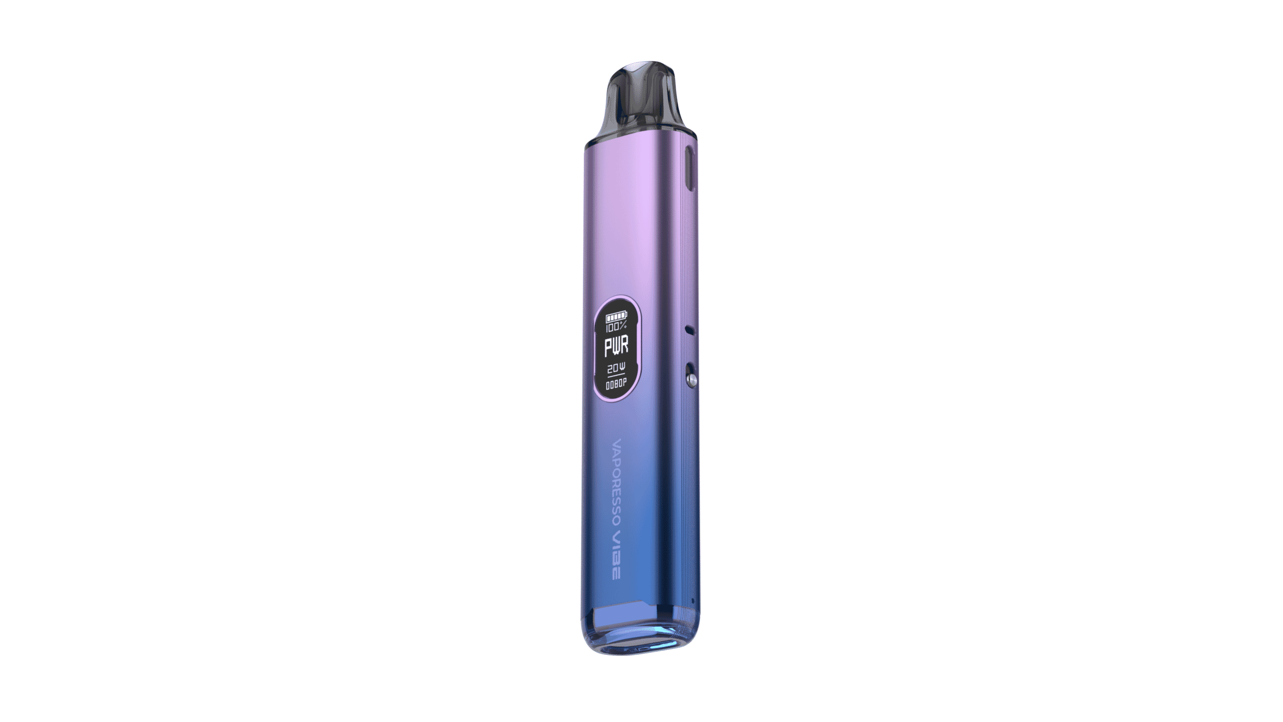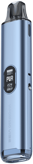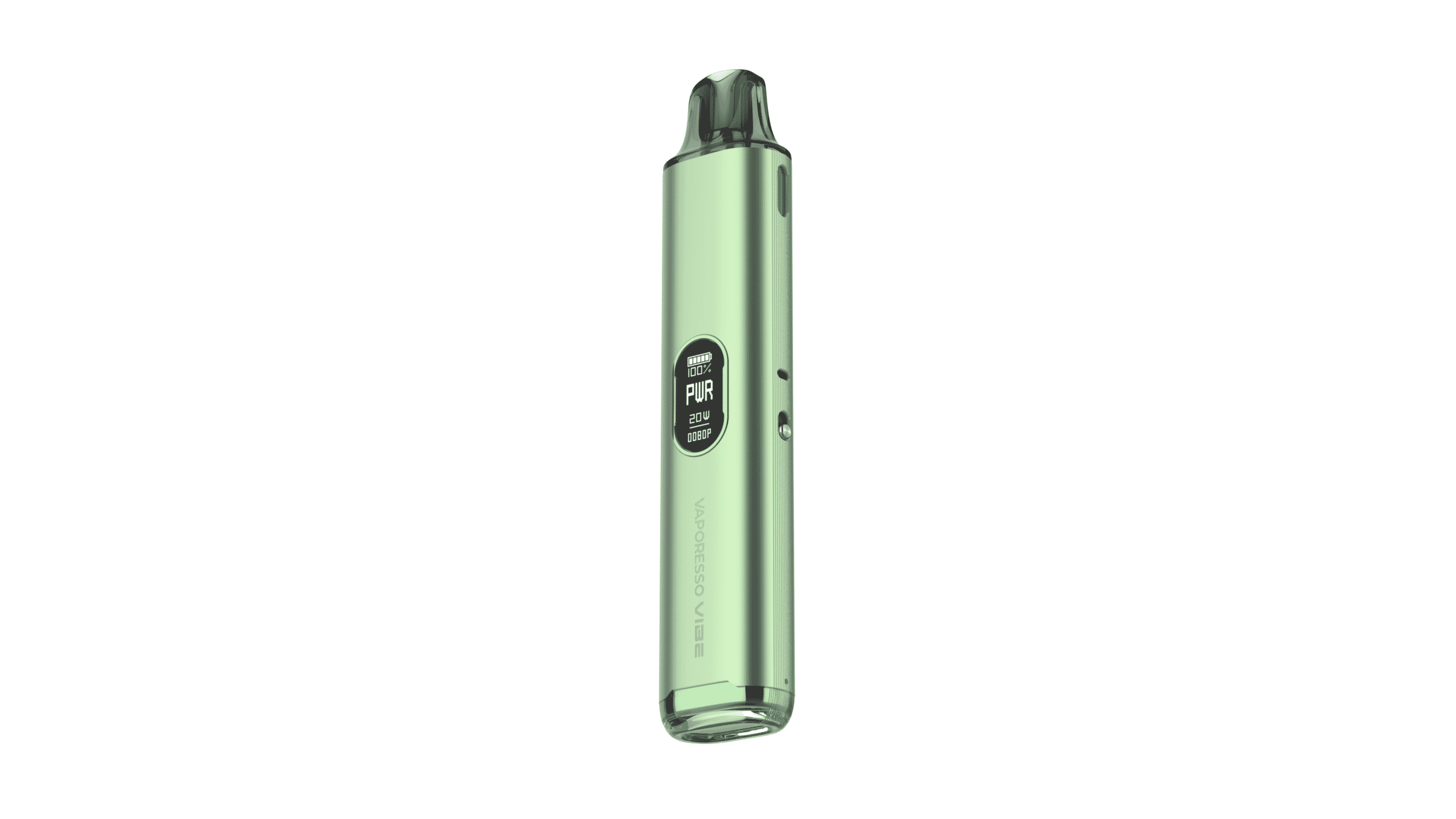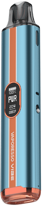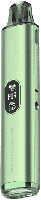 Vibe är ett podkit från Vaporesso med en batterikapacitet på 1100 mAh. Enheten kommer med en 0.54″ OLED skärm och aktiveras automatiskt via inhalation på munstycket.