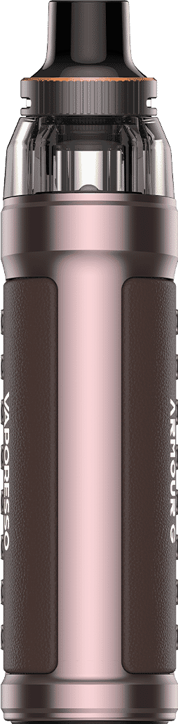 Armour G Kit har framställs utav Vaporesso med en lång erfarenhet i branschen, och har led-ljus som följer sidan utav enheten för att lysa upp enheten samt även en greppyta utav läderimitation, så att man kan hålla den stabilt i handen. Med hjälp utav låsreglaget på enhetens framsida så kan du även låsa avfyrningsknappen som kan vara till fördel för att undvika att knappen slås på utav misstag när du är i rörelse.