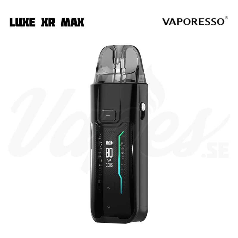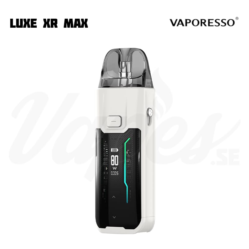 Vaporesso LUXE XR MAX är ett nytt podsystem från Vaporessos populära LUXE-serie. Enheten har ett kraftigt inbyggt batteri på 2800 mAh och klarar en effekt på upp till 80 watt. Du laddar batteriet enkelt med medföljande USB-C-sladd.