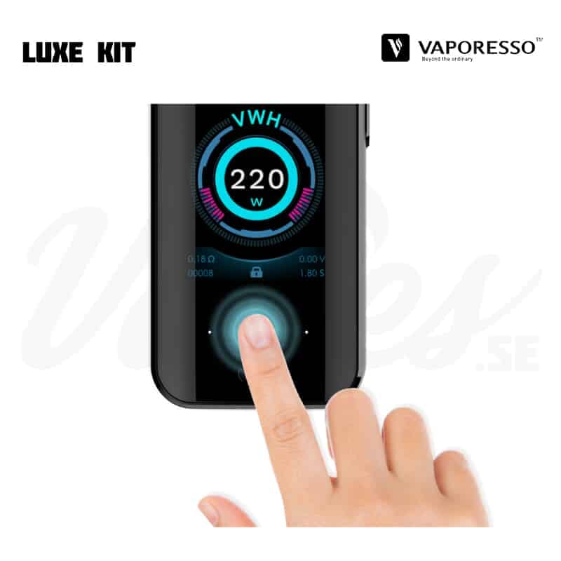 Vaporesso LUXE Kit kombinerar den reglerbara och högpresterande modden Vaporesso LUXE (220 W) och sub-ohm tanken Vaporesso SKRR (8 ml). Vad sägs om 8 ml vätskekapacitet, upp till 220 W, touchskärm, topfill och mycket annat? Spana in beskrivningen nedanför för mer information.