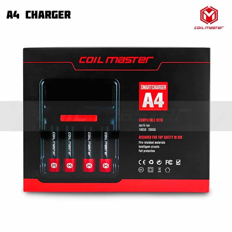Coil Master A4 är en laddare designad för 18650- & 26650-batterier, de två typer som mest används till e-cigaretter. Med snabbladdning upp till 2A laddar du batteriet mycket snabbare.