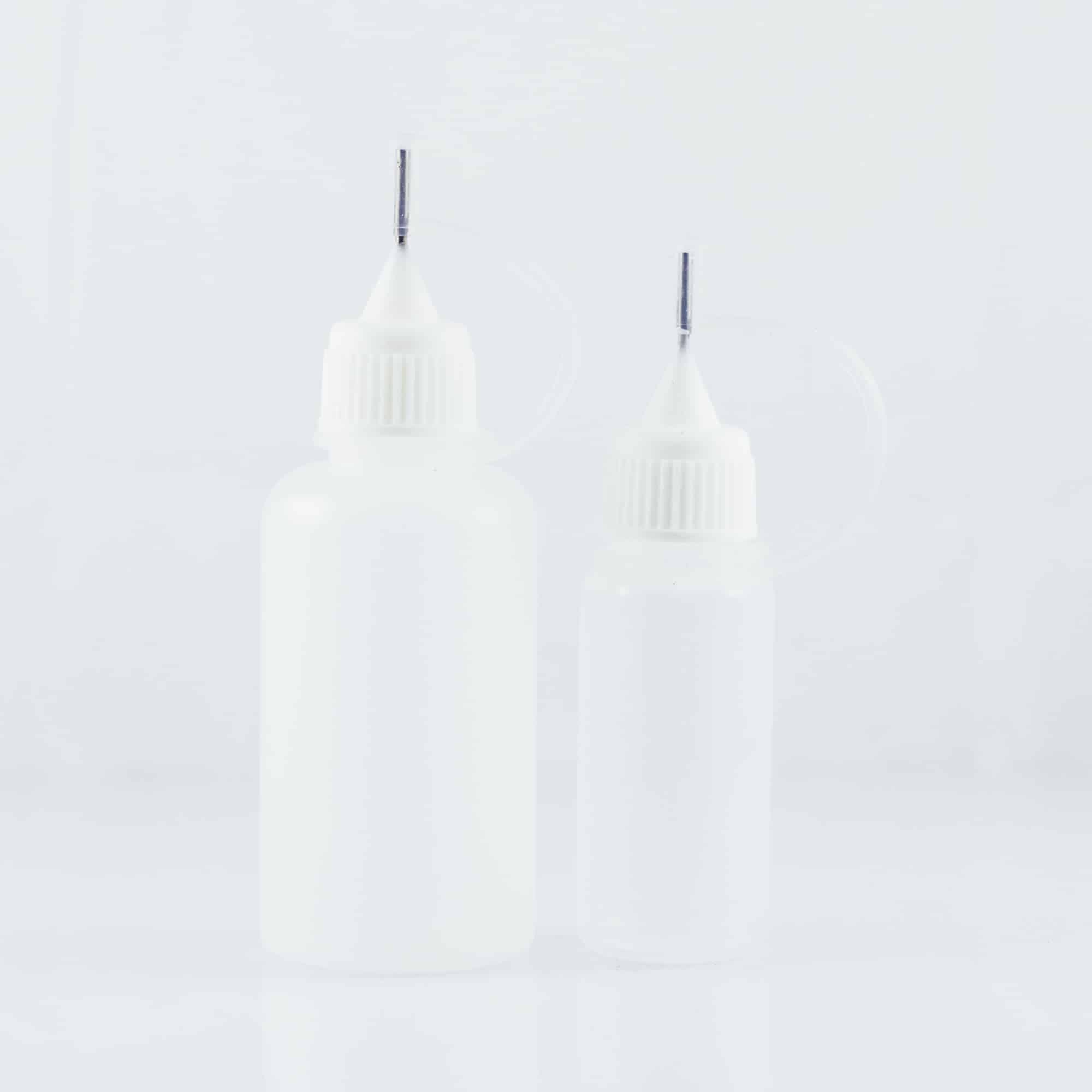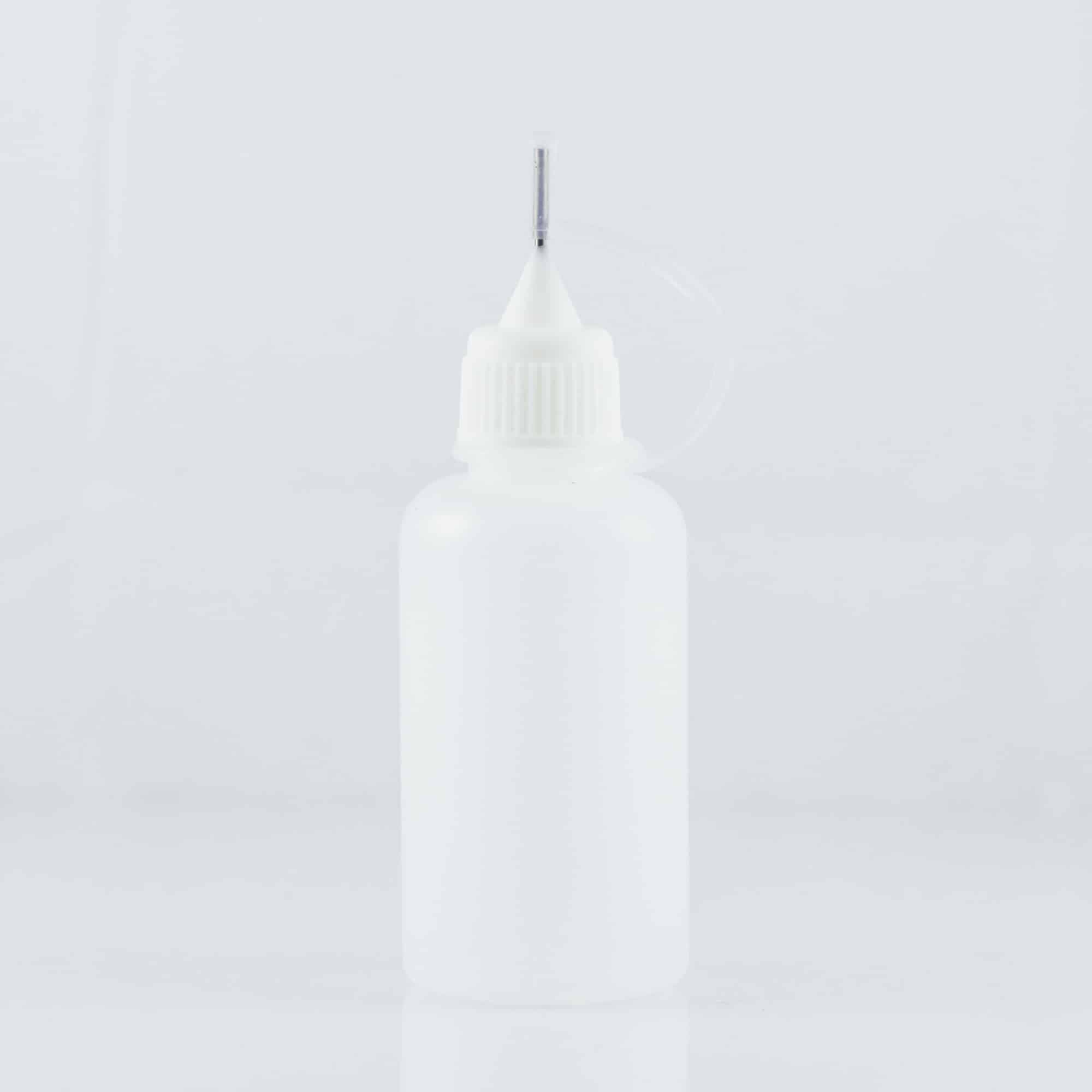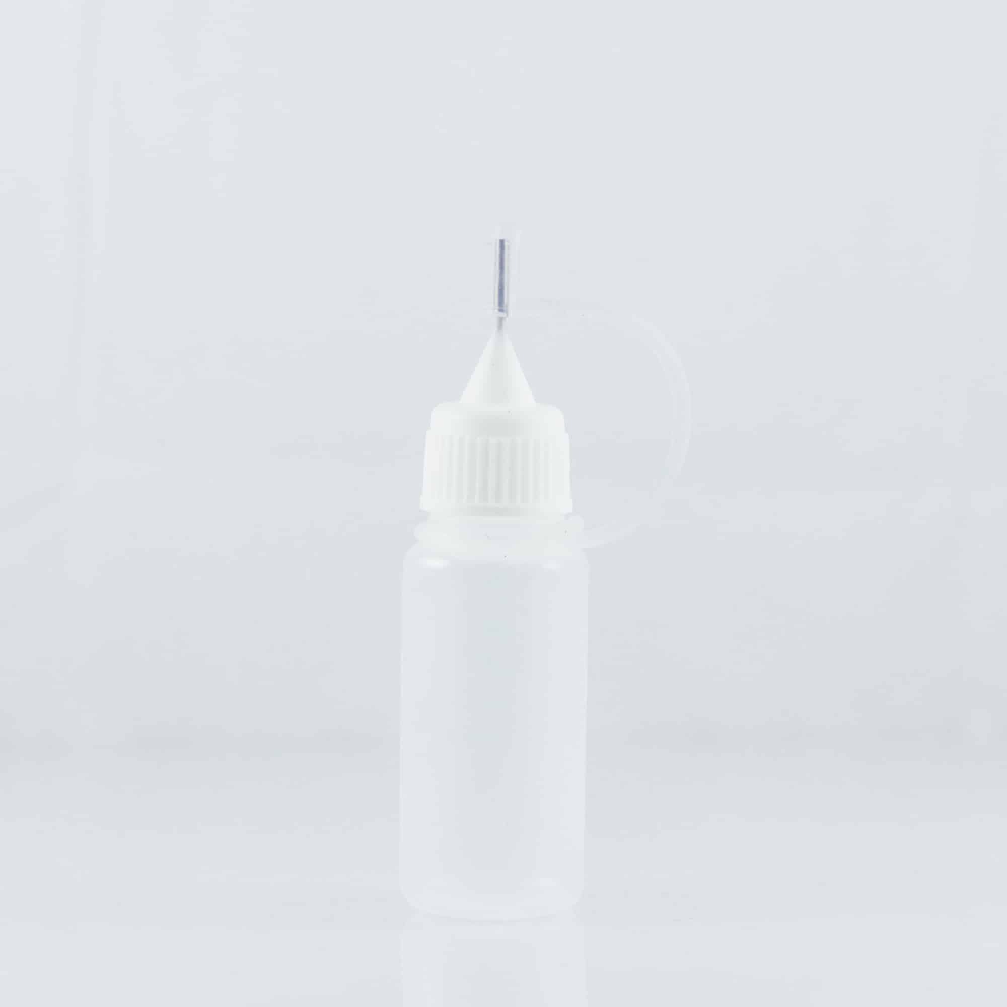 Flaska med nål för enkel dosering av e-juice. Nålen på flaskan låter dig smidigare fylla upp din tank eller blötlägga bomullen i en RDA utan kladd.