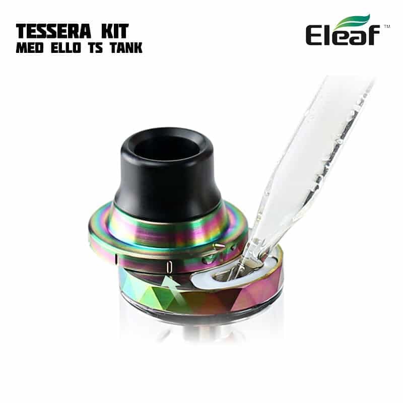 Eleaf Tessera Ello TS Kit med 2 ml vätskekapacitet, 3400 mAh inbyggt batteri, klockfunktion, flera olika färgteman att välja mellan samt påfyllning via toppen.