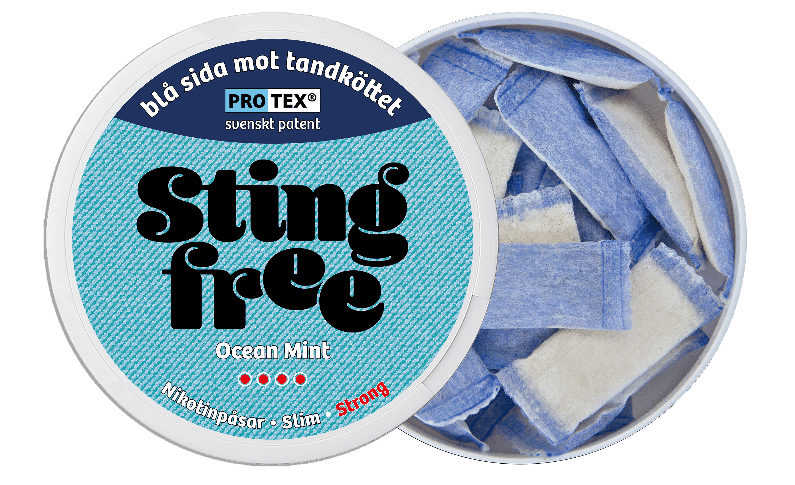 Stingfree Ocean Mint Strong All White Snus erbjuder en förbättrad snusupplevelse tack vare sitt patenterade blåa skydd för tandköttet. Denna all white portion med smak av mint är designad för att minimera sveda och irritation som ofta uppstår med andra nikotinportioner.