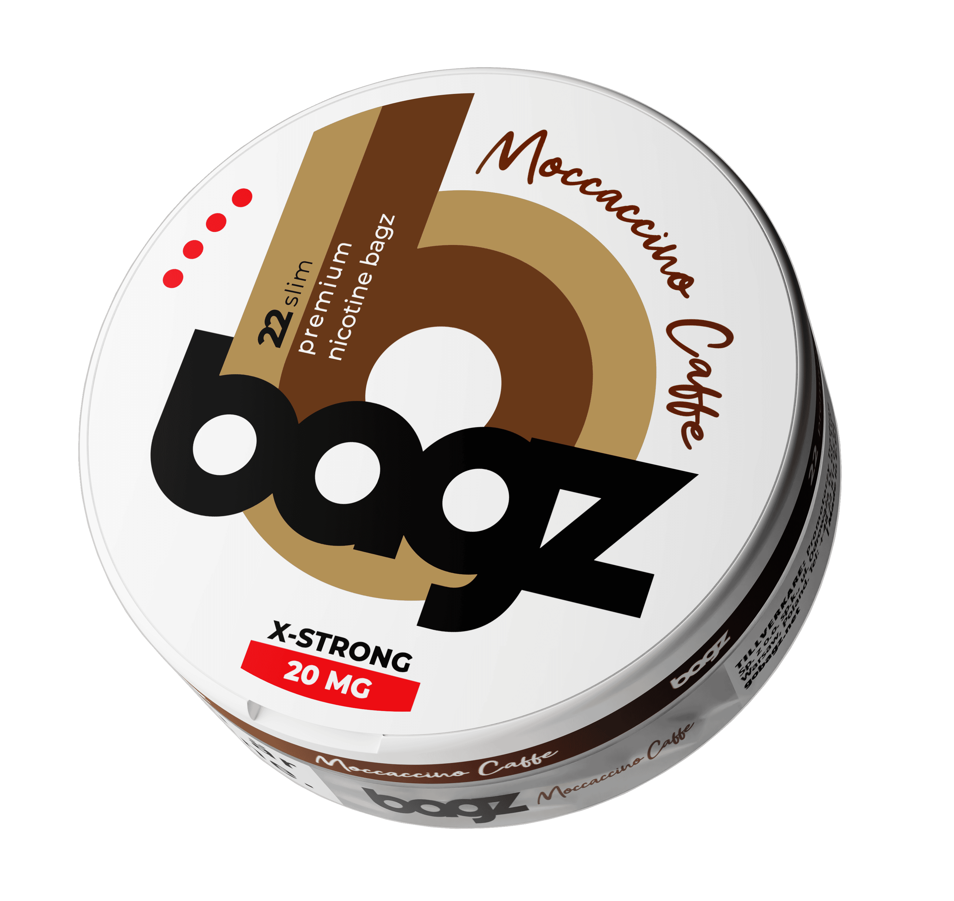 Bagz – Moccaccino Caffe X-Strong i Slim-format. Denna nikotinpåse från Bagz är extra stark och har en smakprofil utav choklad och kaffe (mocka).